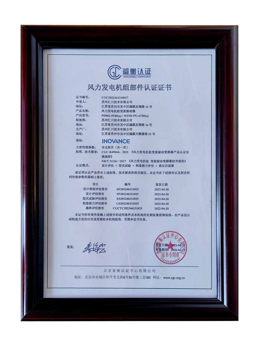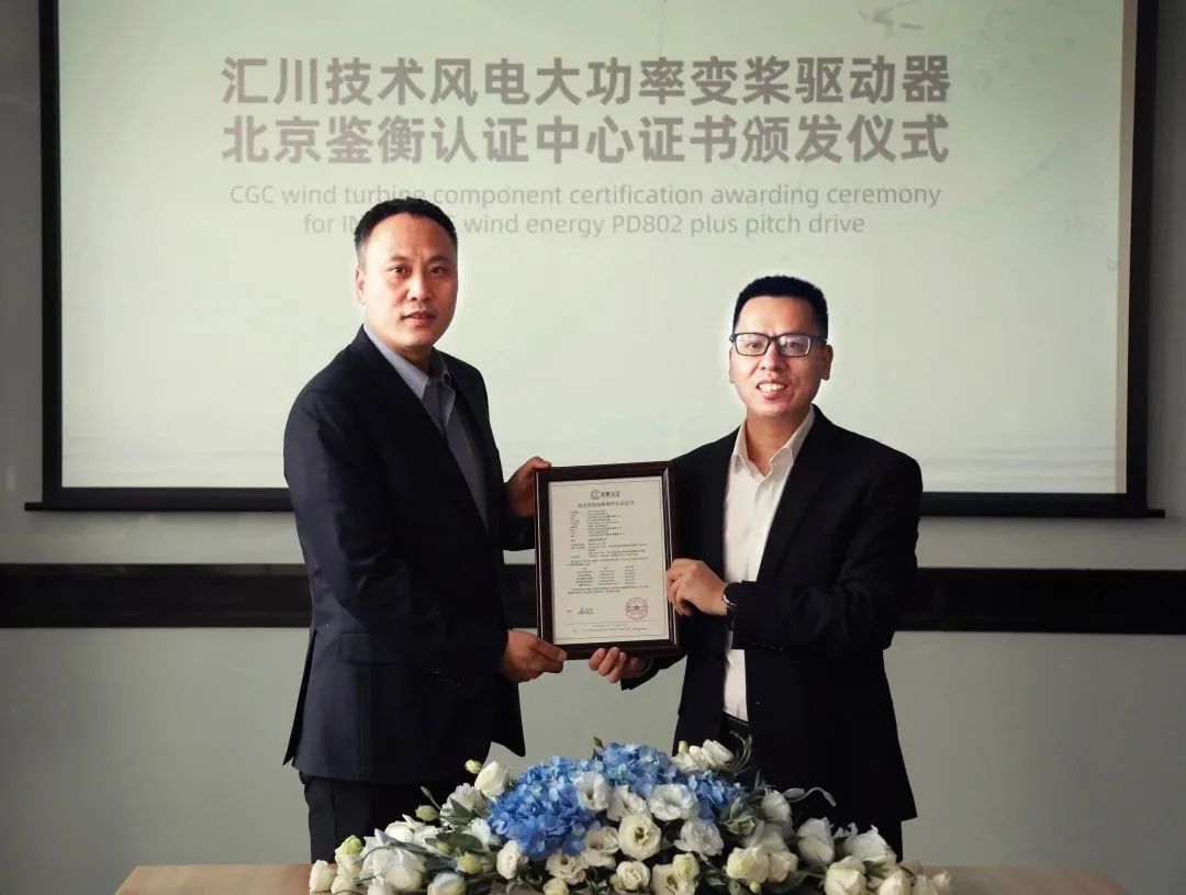 匯川技術榮獲“風力發(fā)電機組部件認證證書”
